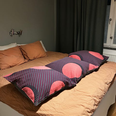 Nytvättade men en liten prick på ena kudden.