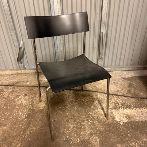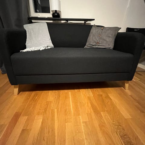 Svart Pinnsoffa ”BJÖRKSNÄS” från IKEA med grå dyna.