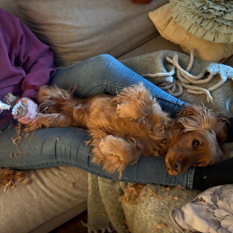 I stort är Lotus verkligen den fantastiska hund vi sökte. Han är jätteglad i andra människor och andra hundar, nyfiken på nya miljöer. Han är smart, lättlärd och trygg i sig själv. Han har ett skönt lugn i kroppen, lägger sig gärna till ro och myser inne utan att bli rastlös. När det är dags att gå ut är han lika sugen på att promenera, ta en springtur, träna eller bara ligga i trädgården och filosofera, gärna med en pinne att gnaga på. Han kan gå lös utan att sticka och har en god grundlydnad för sin ålder. Han har stor träningslust och vi tränar en del spår och sök, vilket han tycker är väldigt kul. Han kan vara själv hemma och biter aldrig sönder något i hemmet. Han är helt rumsren och van att åka bil.