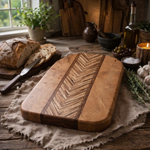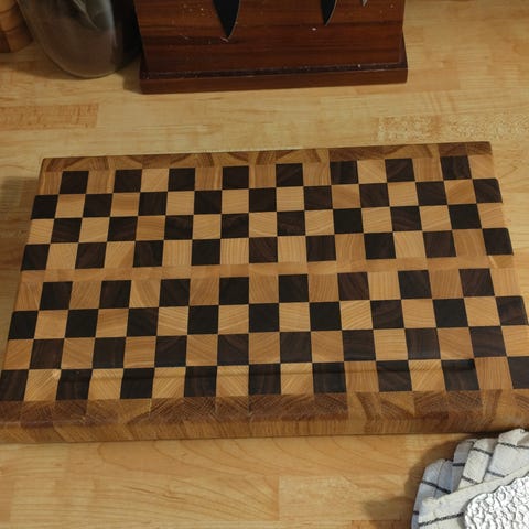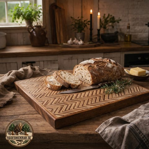 Stor skärbräda med upp- och nedvik på kortändorna.