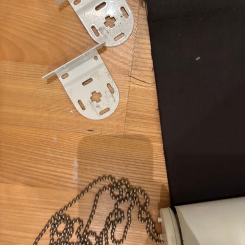 Mörkläggninggardin i svart, säljes då den var för kort hos oss. Som nu, säljes med fästen. Nypris 499