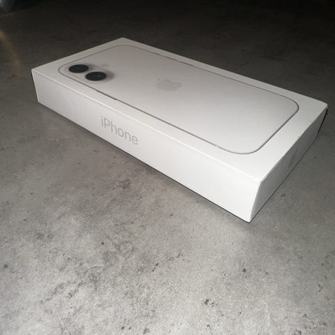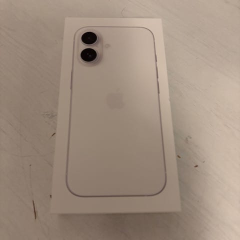 Apple iPhone 16 med 128 GB lagringsutrymme. Levereras med originaltillbehör inklusive laddare. Batterihälsan är normal med 100 % kapacitet. Tillverkad i november 2025 och första användning i januari 2026 eftersom den är helt ny köpt från Elgiganten. Inga fel eller repor på telefonen.