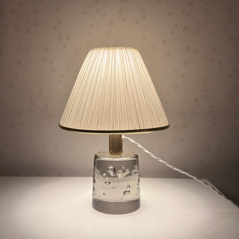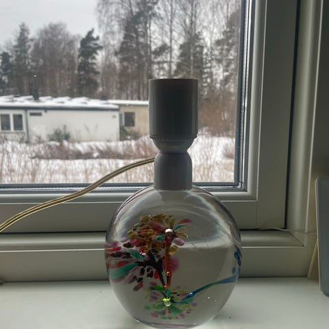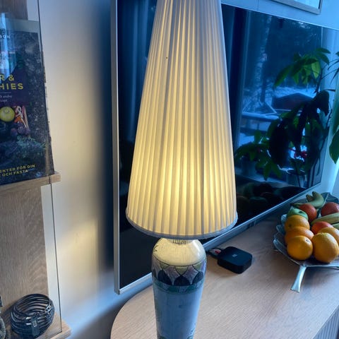 Totalhöjd ca 38 cm, diameter skärm nedtill ca 20 cm, höjd skärm ca 14 cm.