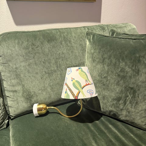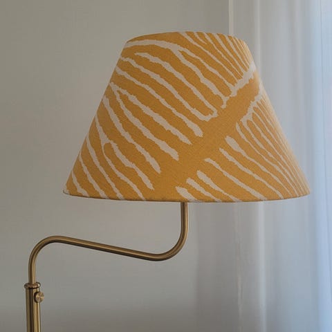 Bordslampor i glas och mässing klädda i Svenskt Tenn Josef Franks Anakreon