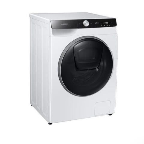 Bosch Frontmatad tvättmaskin med digital display och flera tvättprogram. Maskinen är vit och har funktioner som SpeedPerfect och EcoSilence Drive för effektiv och tyst tvättning.
