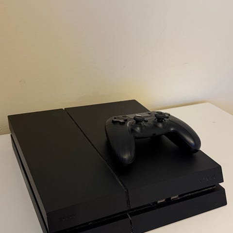Playstation 4 spelkonsol för spel och underhållning. Konsolen har en svart färg och är avsedd för användning med Playstation 4-spel.