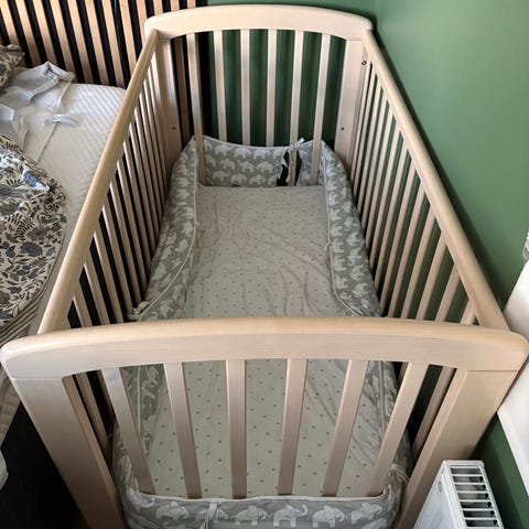 Spjälsängen har en reglerbar långsida, så kallad dropside, vilket är praktiskt när du ska samsova, lägga eller ta upp barnet. Sängens botten är ställbar i tre lägen som enkelt ändras i takt med att barnet växer.