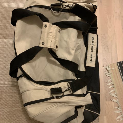 Svart Reebok ryggsäck/trunk. Utrustad med flera fack och dragkedjor för förvaring. Passar för vardagligt bruk och sportaktiviteter.