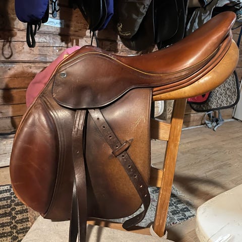 Epona hoppsadel 17 tum med utbytbara kopp järn, W koppjärn sitter i. Epona är en modell som tillverkas i samma fabrik som Ikonic.