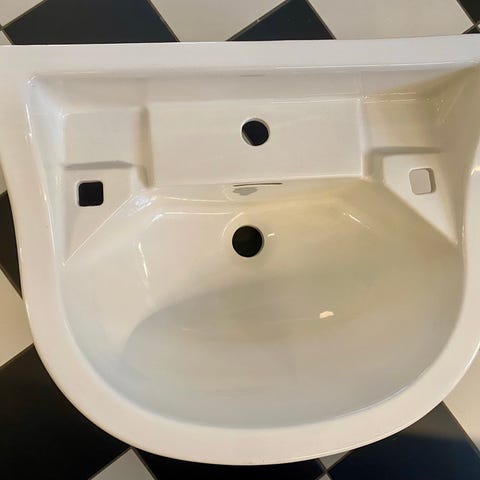 Handfat i vitt porslin med måtten 42x42 cm. Inklusive blandare