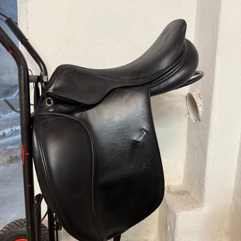 Mycket fin begagnad dressyrsadel, 17 tum , bomvidd +2,5 = Wide, årsmodell 2017, brun.