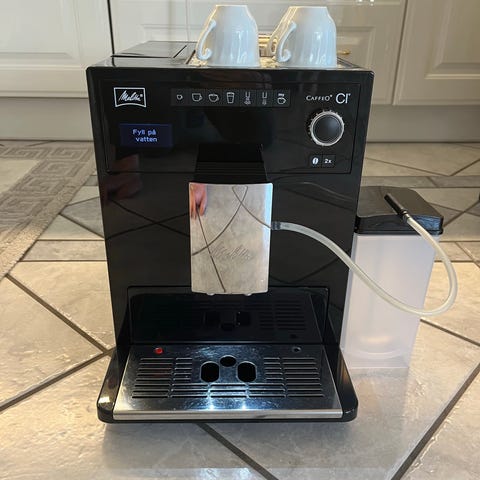 Gör väldigt gott kaffe/espresso, rengjord regelbundet när maskinen sagt till.