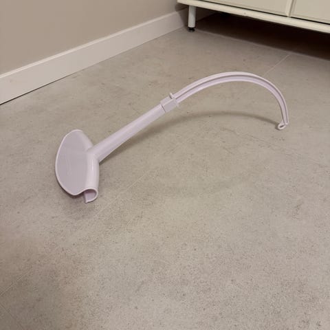 Medföljer en distans samt ögla för att montera leksak. Mellanrum för infästning i skötbord är ca 25mm
