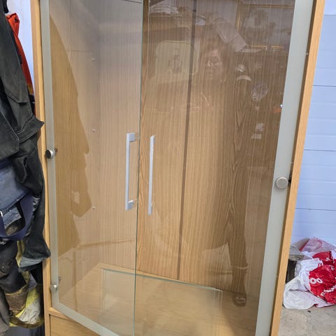 Två vitrindörrar till Liatorp bokhylla från IKEA (har utgått ur sortimentet). I gott använt skick med några skavanker (syns på bilderna).