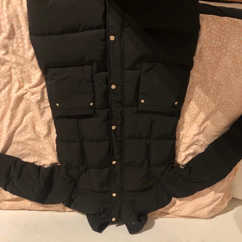 vinterjacka i storlek S för kvinnor. Jackan är beige och tillverkad av polyester. Den är designad för att ge värme och komfort under kalla perioder.