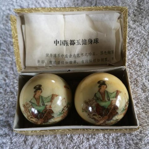 Detta är 2 meditationskulor från kina, man rullar runt dom i handen och slappnar av.