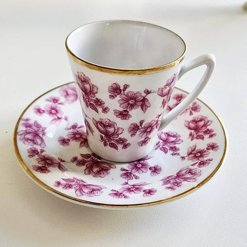 Vackra gammaldags kaffekoppar och fat. Nyskick! Vintage troligtvis 60-tal. Vita/guldfärgad kant.