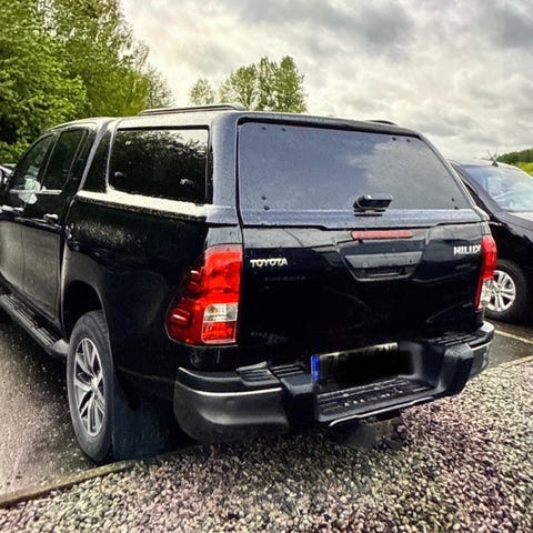 Toyota original bilstereo med skärm. Enhet med flera anslutningar och kontroller på framsidan. Passar för installation i Toyota hilux