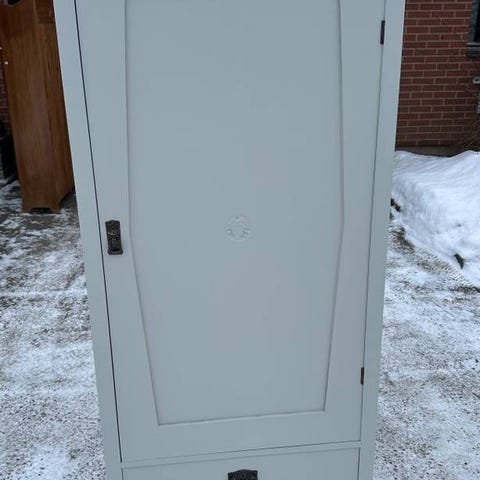 Klädskåp 1900-talets första hälft. Ljusgrått.