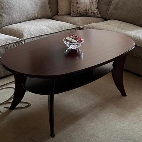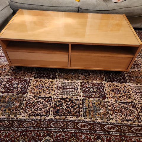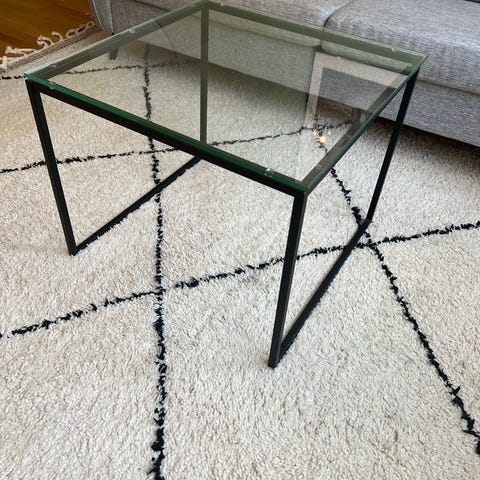 Grått soffbord får ikea havsta med mått 74×60× 49cm. Finns tecken på slitage
