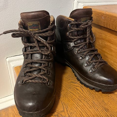 Nogrant omhändertagna, smörjda och tvättade. Sulorna urtagna och infettat i snörenas fästen.