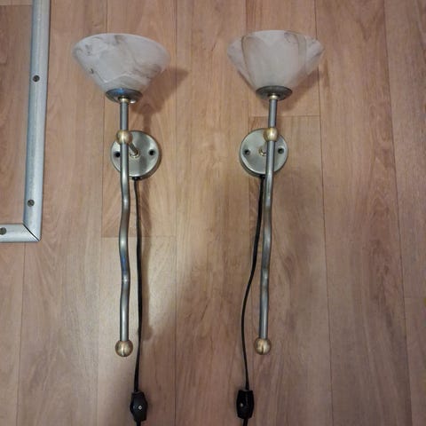 2 st Vägglampor med hylla och USB-uttag, Vit