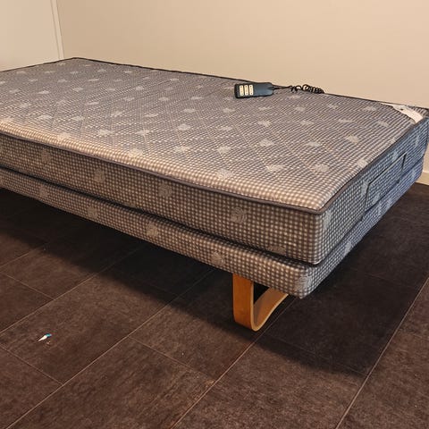 2st KungSängen sängar med grått/blått mönster. Sälj med tillhörande tjockare bäddmadrasser. 105x200. Vita ben/medar ingår. Fint skick! Djur- och rökfritt hem.