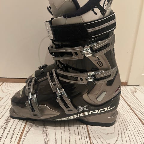 Dalbello Veloce Max 130 skidpjäxor använda i två veckor. Designade för att ge stöd och komfort vid skidåkning och tillverkade i Italien. Storlek 26,5 308 mm. Är en bra nybörjarpjäxa för den som väger runt 50 kg då flexen är 75. Pjäxan är varken bred eller smal, utan passar en normal fot. Inköpta i sportbutik för två år sedan.