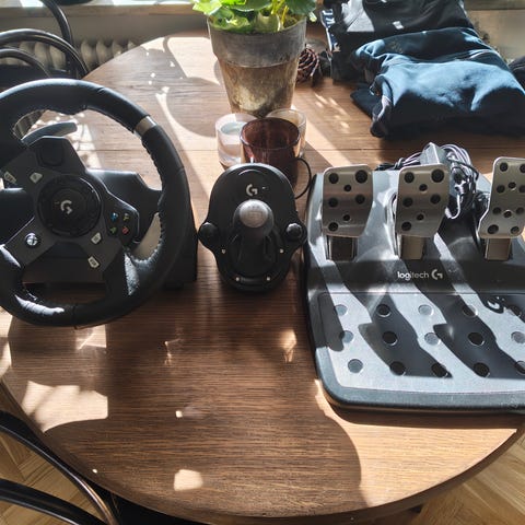 Logitech G923 Racing Wheel och Pedaler för Xbox med TrueForce Force Feedback-teknik. Utrustad med ratt och tre pedaler för en realistisk spelupplevelse. Funkar med windows 10/11. Kan lämnas runt Mörbylånga/ kanske kalmar
