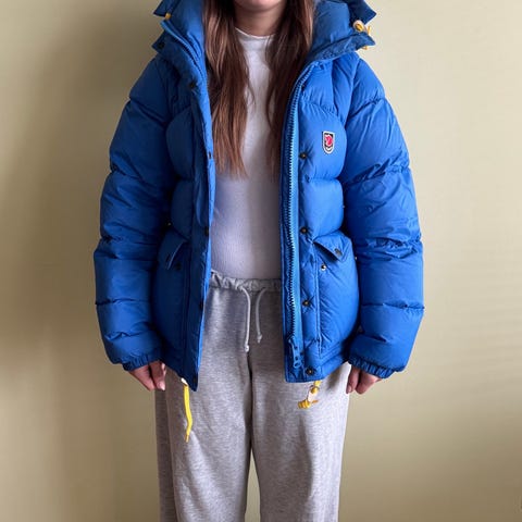 Fjällräven vinterjacka för dam i storlek XS. Jackan är svart och tillverkad av dun som isoleringsmaterial. Den har en huva och är designad för att ge värme under kalla förhållanden.
