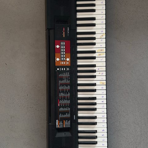 Yamaha EZ-220 keyboard med digital piano funktion och olika andra instrumentljud samt några guidade musikstycken. Svart färg. Inkluderar stativ strömadapter och manualer. Passar för nybörjare då läroboken medföljer.
