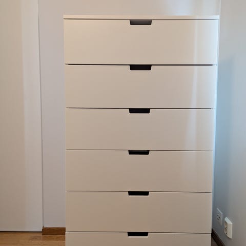 Ikea byrå Nordli med 8 lådor säljes. Helt OK skick - en liten fläck.