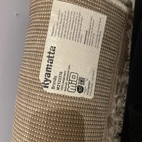 Ny "Odon" matta från Jysk som jag tyvärr har lyckats spilla chokladdryck på. Någon som är bra på fläckborttagning får gärna hämta bort. :) Förutom fläcken i övrigt i gott skick.