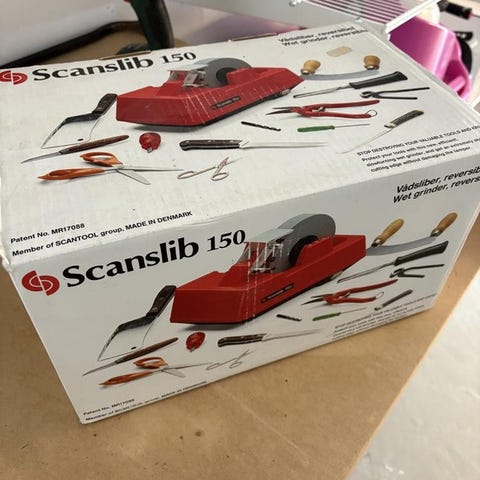 Bänkslipmaskin för t ex slipning och vässning av verktyg och metallföremål från Clas ohlsson. (Liknar denna https://www.clasohlson.com/se/Tormek-T-4-bankslipmaskin-/p/40-9466)