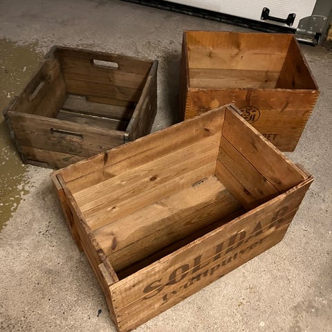 Pripps drickabackar, perfekt för vinylsamling eller nostalgisk förvaring. Hela och fina.