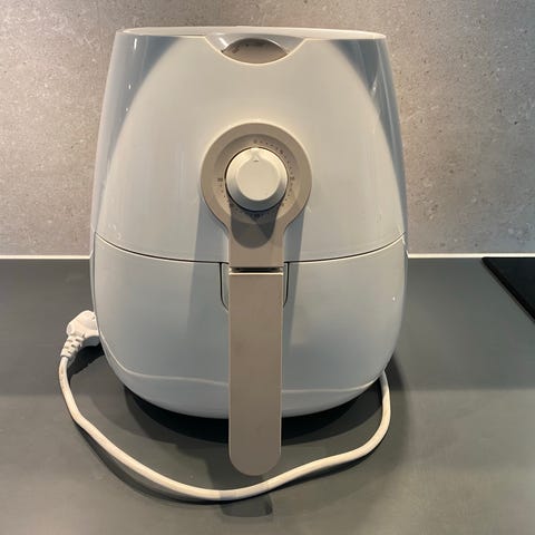Säljer en airfryer från House of Chefs med kapacitet 3,5 liter. Stilren svart design med silverdetaljer och vred för timer (upp till ca 30 min) (osäker). Ser ut att vara i mycket gott skick och kommer med originalkartong samt instruktionshäfte. Perfekt för pommes, kyckling, grönsaker m.m. – krispigt med mindre olja.