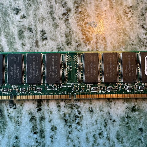 NCP 128MB PC100 SDRAM-minnesmodul, en typ av äldre dator-RAM.