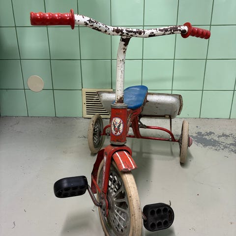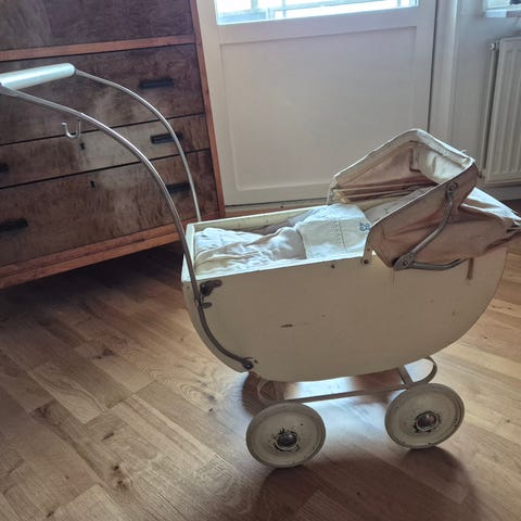 Säljer en klassisk travhäst/leksaksvagn från 1950–60-talet, tillverkad i metall och plast. En riktig nostalgipryl som passar perfekt för samlare, retroälskare eller som inredningsdetalj.