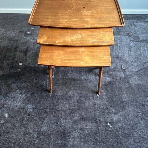 Antika soffbord eller avlastningsbord i Rokoko-stil. Sannolikt tidigt 1900-tal. Det större bordet med intarsia (infälld dekoration) Borden kan eventuellt säljas separat.