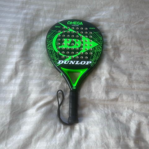 Dunlop Aero Star padelracket i svart och röd färg. Racketen har en perforerad yta och ett grepp med handledsrem. Passar för padelspel.