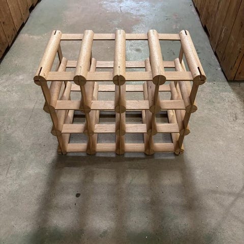 Vinställ i massivträ från Ikea, plats för 9 flaskor. Obehandlad yta. Bra skick men finns något hack i träet. Finns ytterligare en i sämre skick som kan fås med på köpet om så önskas. Fler foton kan fås på förfrågan.