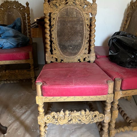 Antik stol i trä med rottingstolssits