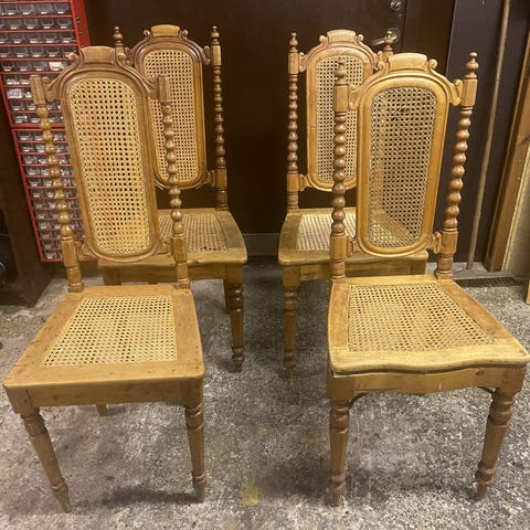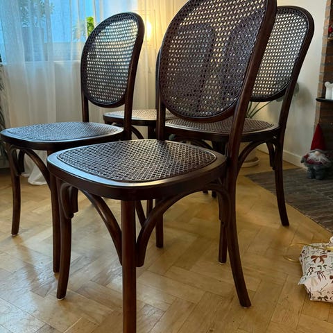 4 fina rottingstolar säljes! De två stolarna längst fram har inga anmärkningar, de två längst bak har båda slitage.