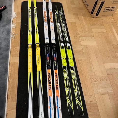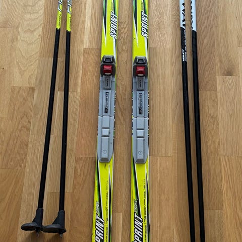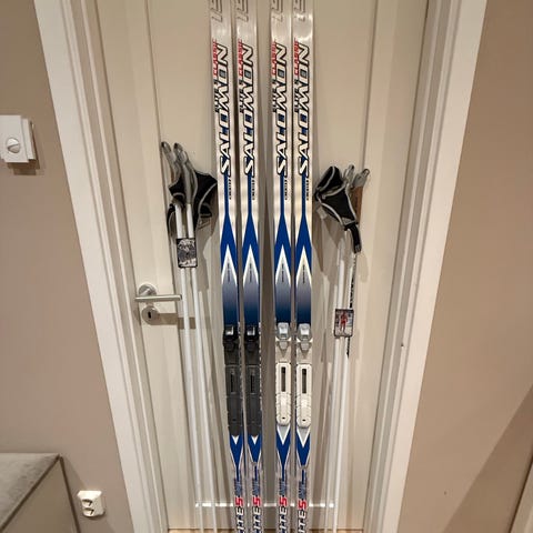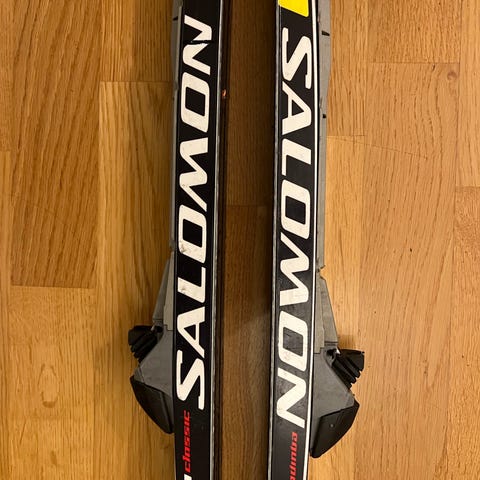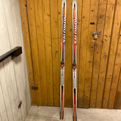 1st Salomon längdskidor för vuxen person runt 160-170 cm, skidorna är 186cm. Finns stavar också.