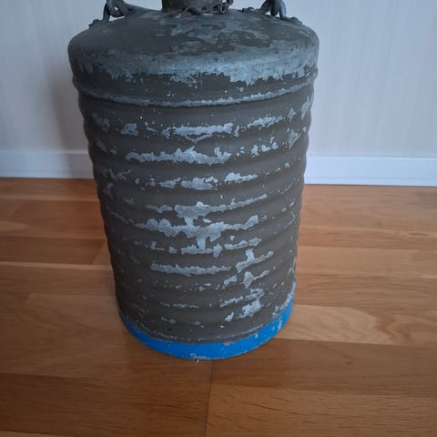 Två väder och åldersbitna äldre mjölkkannor med charm