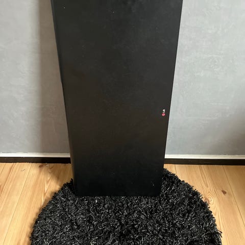 LG ljudanläggning med ljudstång och separat subwoofer. Systemet är svart och avsett för att förbättra ljudupplevelsen vid användning med TV eller annan ljudkälla.