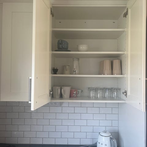 Inbyggt köksskåp med hyllor i trä från början på 1900-talet