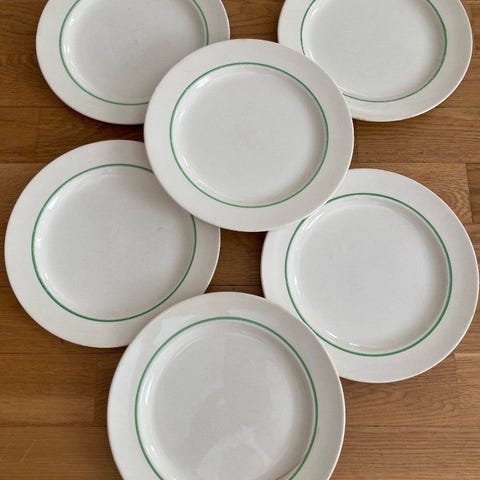 Fint skick! kaffekoppar/fat, mjölkkanna, assietter, och små djup tallrikar