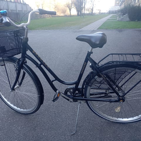 Säljer en damcykel i svart färg av märket Impulse model Solheim, tum 28 med 3 Shimano växlar. Handbroms fram, fotbroms bak, korgen fram samt pakethållare. En bra och fin cykel i god skick.