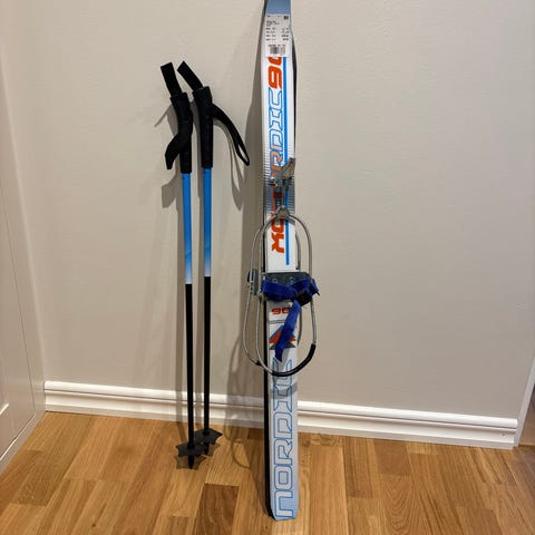 Snowkids barnskidor med tillhörande stavar, längd 90 cm, i rosa färg. Skidorna är avsedda för barn och är utrustade med bindningar för enkel användning.